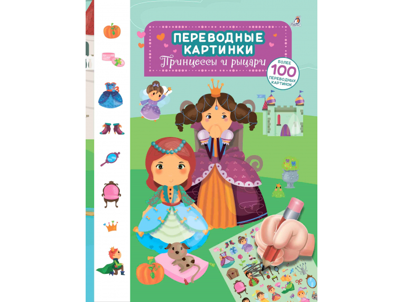 Переводные картинки. Принцессы и рыцари Надоели наклейки? Хотите попробовать что-нибудь новенькое? 100 ярких КАРТИНОК-ПЕРЕВОДИЛОК! Придумай и создай сказочную страну с замками, принцессами и рыцарями. Яркие иллюстрации и интересные сюжеты помогут ребенку развить фантазию! Что такое ПЕРЕВОДНЫЕ-КАРТИНКИ? Эти картинки можно использовать где угодно и как угодно! ПЕРЕВОДИЛКИ легко наносить на страницы книги, тетради, блокнота. Их можно перевести даже на ткань! Изображения получатся невероятно красивыми и чёткими. Игра способствует развитию: · внимания; · мышления; · мелкой моторики; · воображения. Как перенести КАРТИНКУ-ПЕРЕВОДИЛКУ? Инструкция по применению: 1. Приложите к странице прозрачный лист яркими изображениями вверх 2. Выберите картинку 3. Заштрихуйте её карандашом (старайтесь не выходить за края изображения) 4. Аккуратно уберите лист с картинками Яркое изображение останется на странице книги. Очень просто! Содержание · 8 ярких разворотов; · Более 100 переводных картинок; · Переводные картинки переносятся на любую поверхность. Что особенного в этой книге: 1) качественная плотная бумага; 2) картинки-переводилки разного размера с различными героями дворцов и замков; 3) переводить картинки можно с помощью любого твердого предмета; 4) удобный формат и размер книги для рук малыша. Что важно знать родителям? · Книга предназначена для детей от 3 лет;