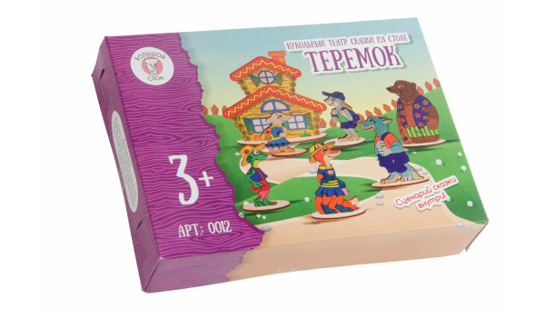 Ребенок с восторгом наблюдает за действиями кукольных персонажей на сцене? Представьте, насколько искренне заблестят глазки вашего крохи, когда вы предложите ему самому поучаствовать в создании волшебного кукольного представления! Первую постановку с участием малыша можно организовать прямо в детской комнате. Для этого в комплекте есть все необходимые приспособления: фигурки героев и декорации и текст любимой многими русской-народной сказки «Теремок». Дайте ребенку возможность самому выбрать понравившуюся ему роль. Помогите ему выучить текст и вместе с ним проведите несколько репетиций. Когда малыш начнет эмоционально играть роль с выражением и без запинок, можно будет назначить дату самого первого представления семейного театра. Такая игра поможет ребенку развить речевые навыки, память, актерские таланты и творческие способности. Помогает развитию мелкой моторики, воображения, игровой и театрализованной деятельности.